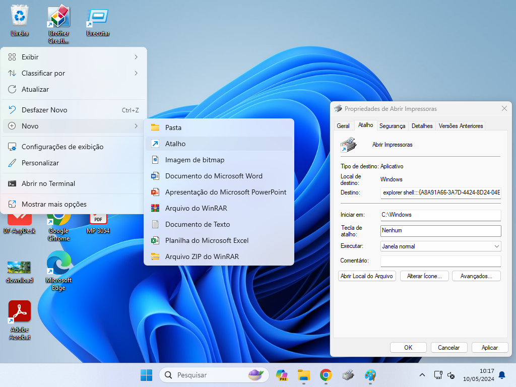 Novo > Atalho. - Insira o comando: Na caixa de diálogo que surge, digite o seguinte comando:plaintextCopy code
